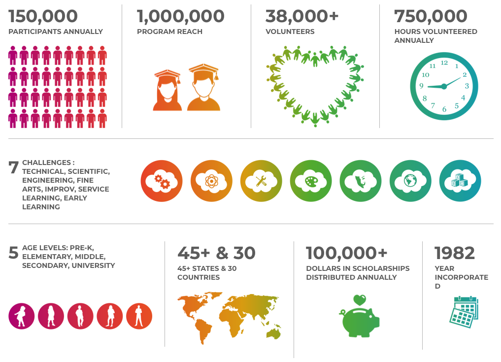 Enabling Colorado’s younger generation to become future industry and civic leaders by emphasizing excellence in teamwork, innovation, creativity, and integrated problem solving through structured challenge competitions focused on science, technology, engineering, the arts, and math. Destination Imagination is a non-profit organization primarily run by volunteers.